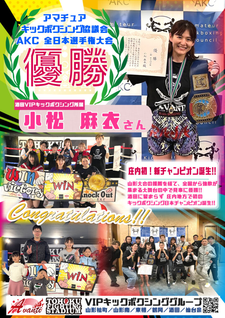 小松 麻衣さん(酒田VIPキックボクシングスポーツ24 所属)が見事優勝!!!